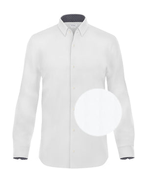 Chemise décontractée facile à repasser avec motif imprimé dans le col et les poignets en blanc