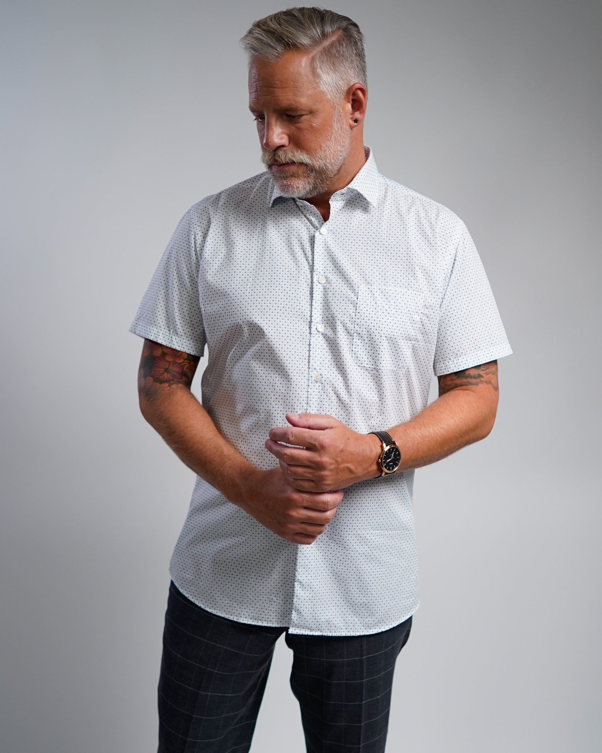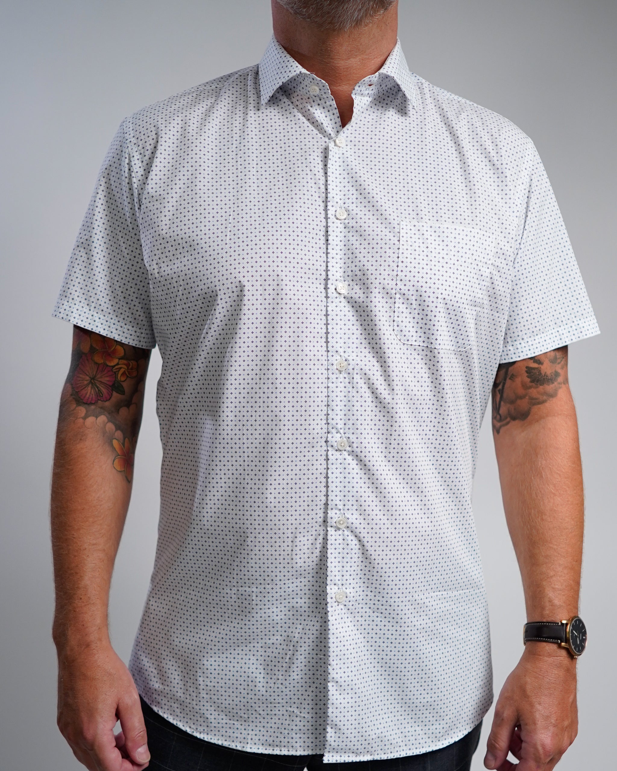 Hemd Weiss Kurzarm mit Printmuster - MANILO